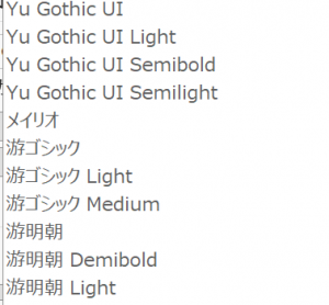 ここで、フォントのリストを開いて、具体的なフォント名の指定ができます。例えば、游書体では、次のフォントファミリーがリストされるのでその中から選択できます。
