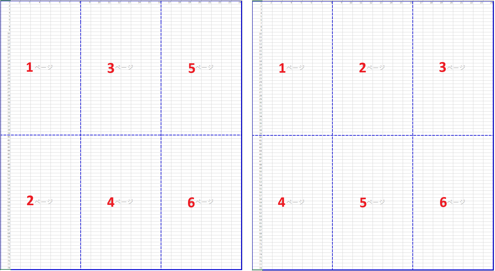 ワークシートをページ分割したときの区切り位置とページの出力順序