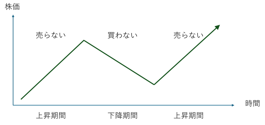 この失敗を避けるには、①株価のトレンドを見極めること、そして、②上昇トレンドの最中は売却しない、③下降トレンドの最中は売却しない、というルールを決めるのは良いでしょう。